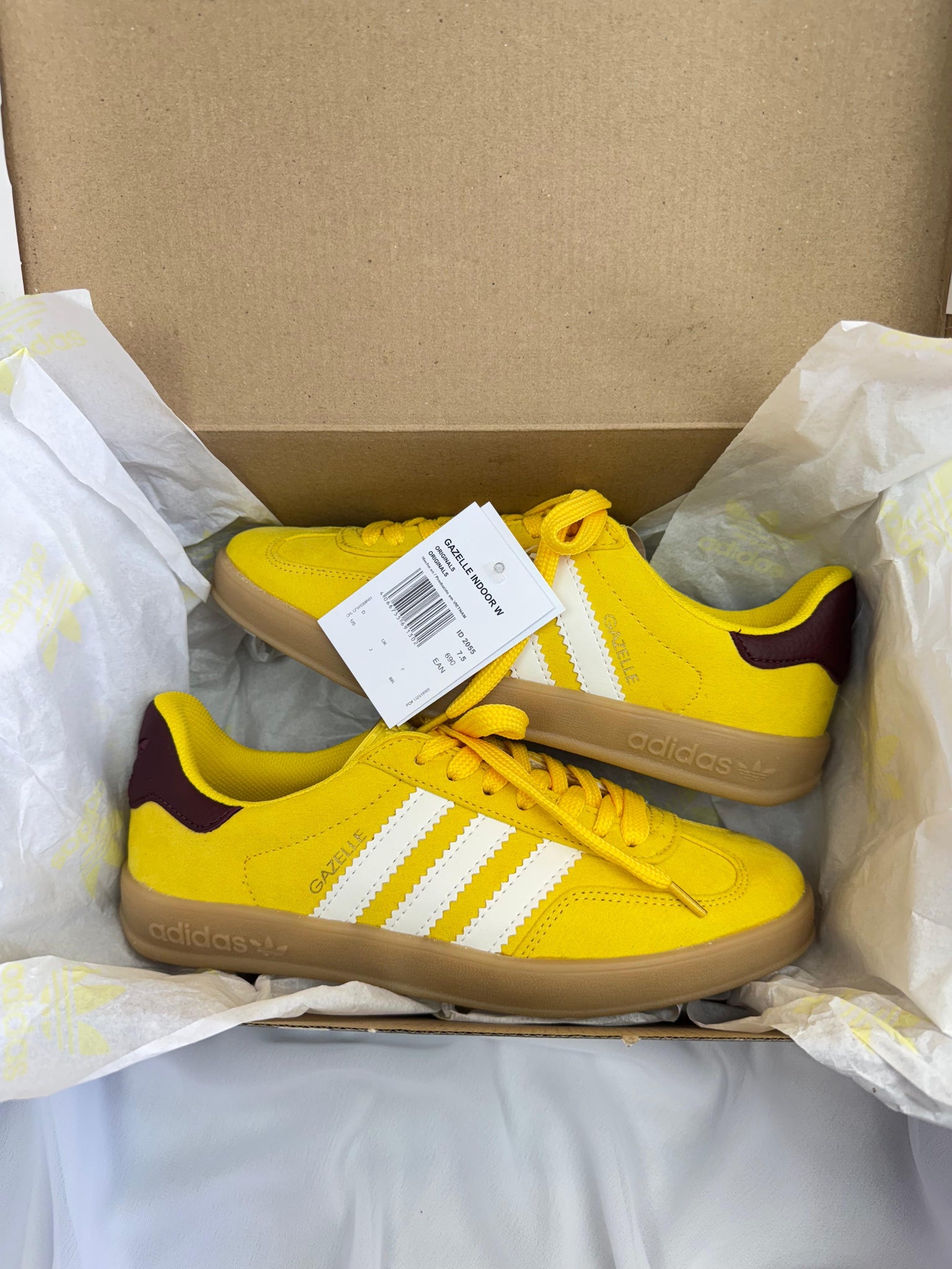 Calce estes confortáveis tênis Gazelle Indoor da adidas e saia para um dia de aventura despreocupada. Feito de camurça macia e flexível, este tênis atemporal oferece um estilo clássico de cano baixo para uma sensação vintage descontraída. O forro têxtil macio adiciona uma camada extra de conforto, enquanto uma sola de borracha de goma promete tração segura onde quer que você ande.