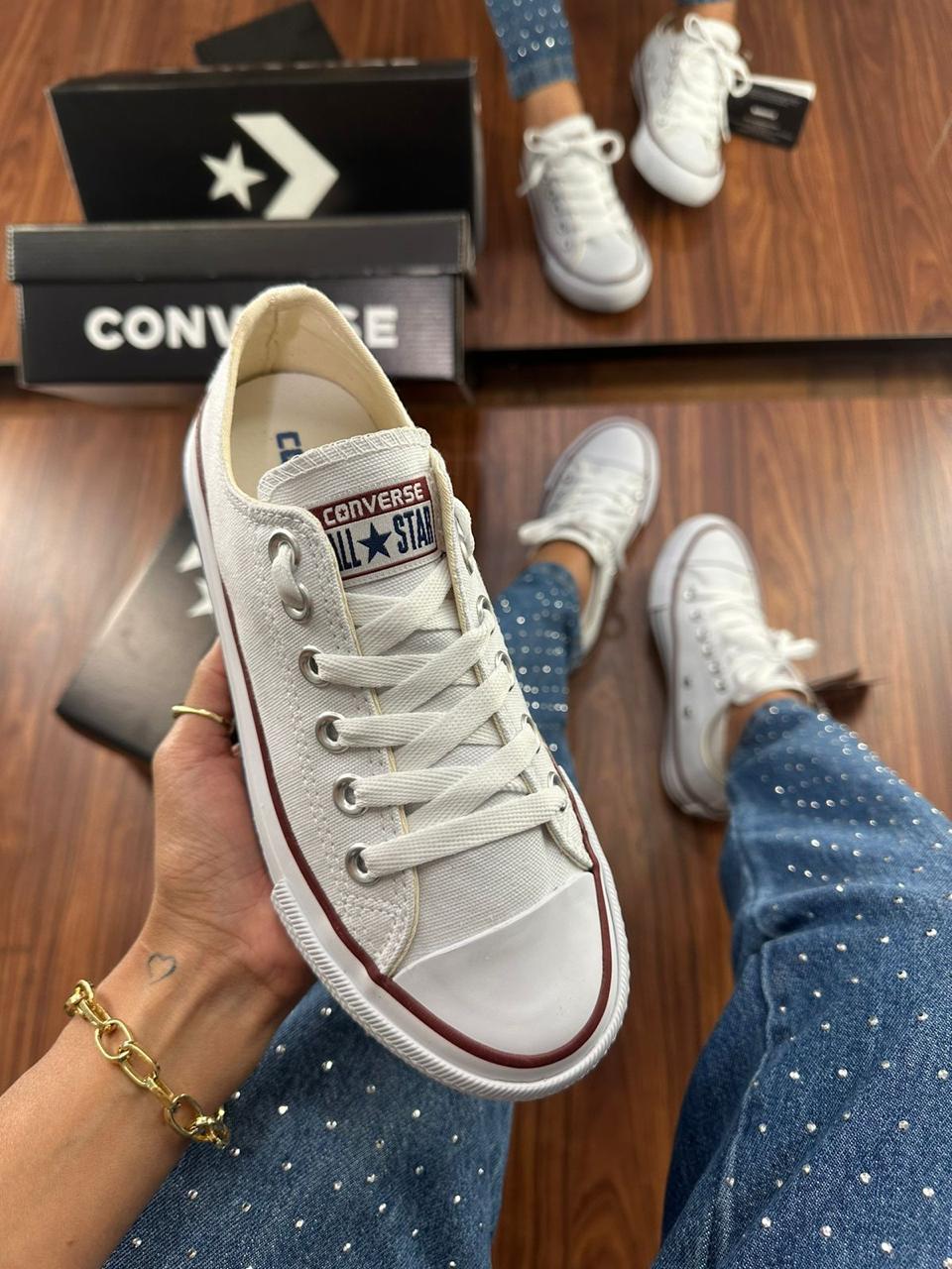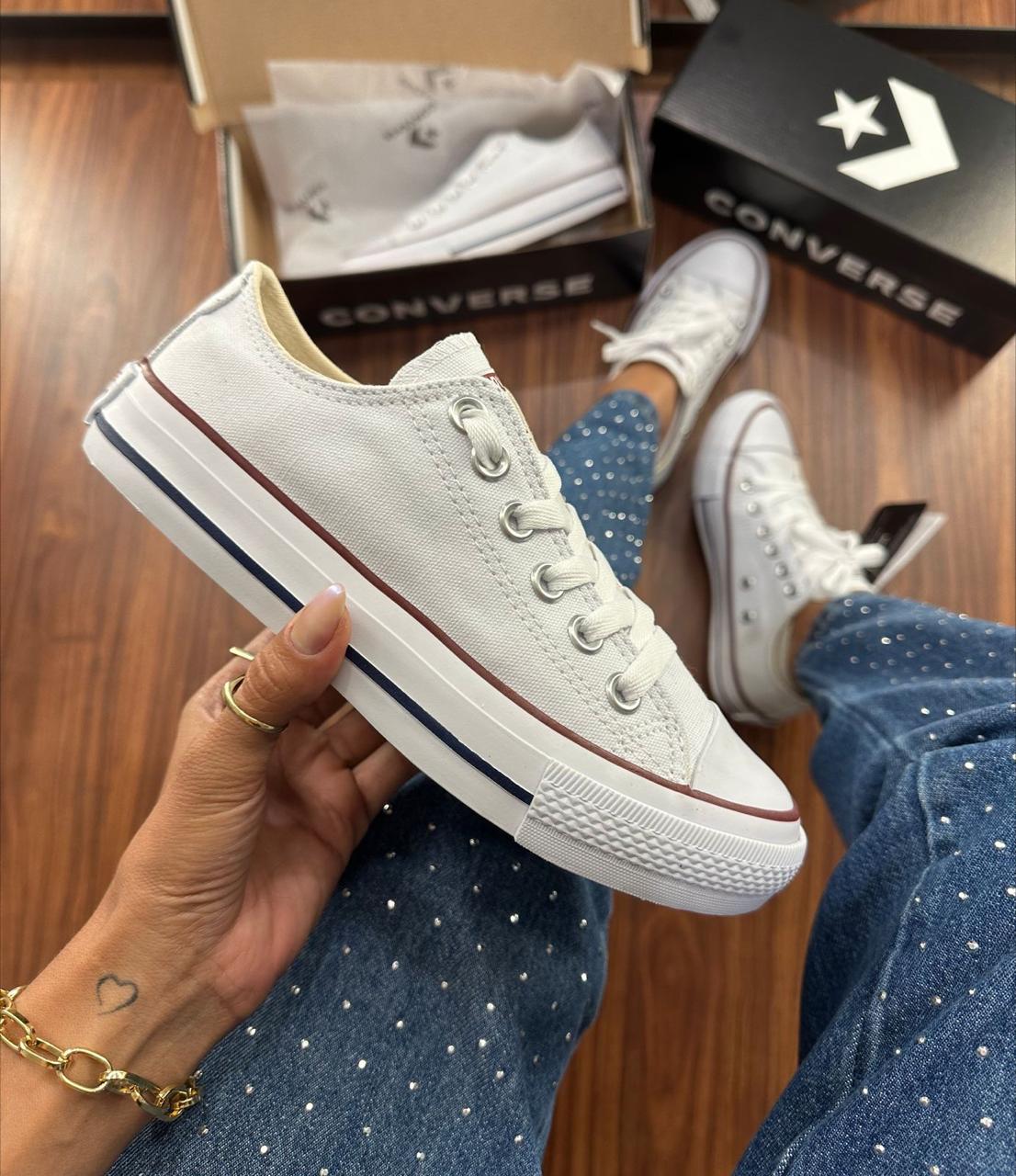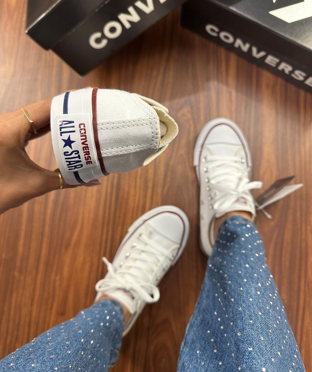 Desde 1917, o Chuck Taylor All Star tem sido o ícone do dia a dia. Você já conhece os detalhes icônicos como o cabedal em lona de algodão, solado com padrão de diamantes e a indistinguível biqueira de borracha. Finalizado com palmilha em EVA para ajudar a manter os pés confortáveis.