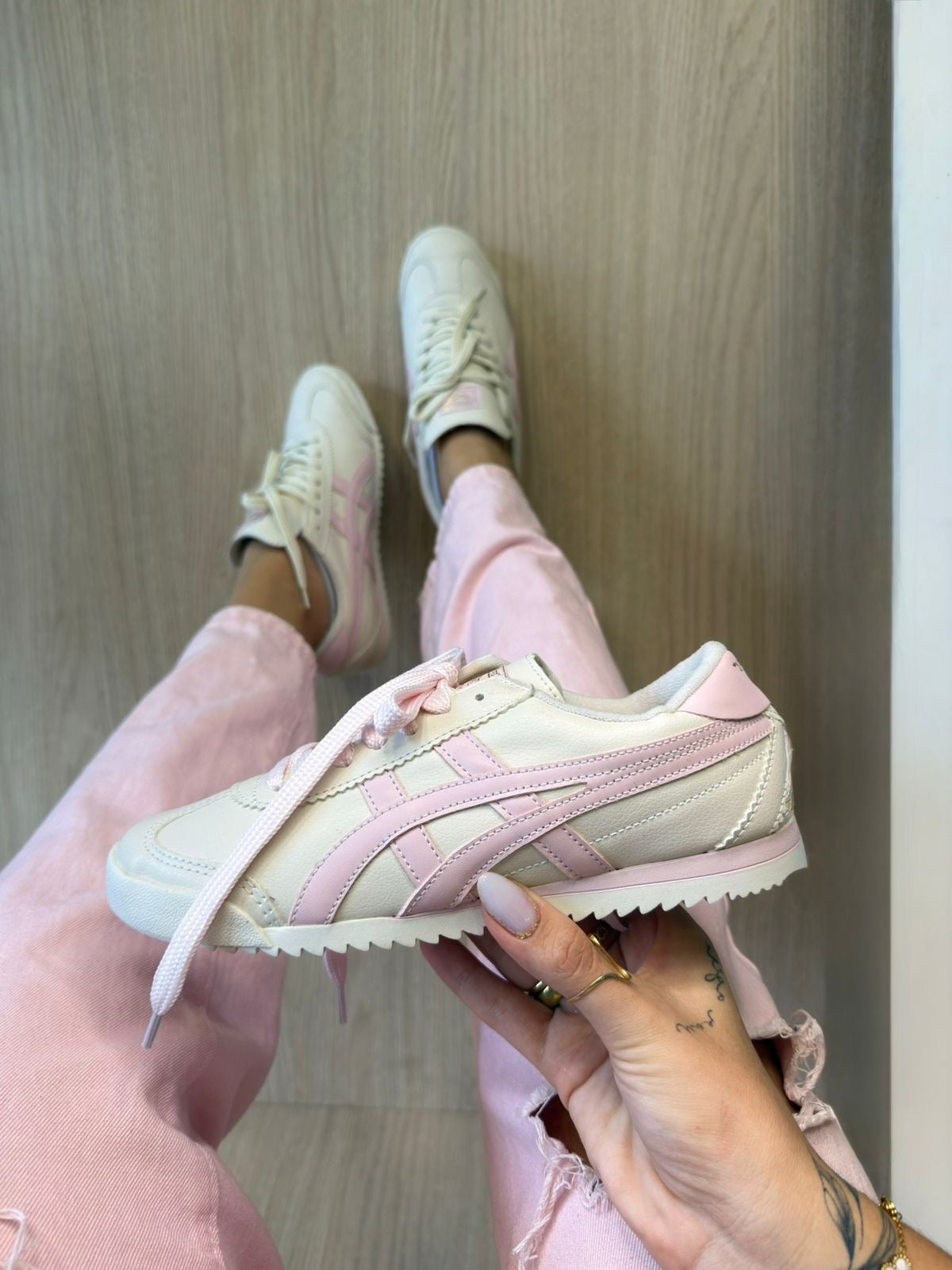 O Onitsuka Tiger Mexico 66 Oatmeal Ginger Peach combina a estética vintage com uma paleta de cores suave e elegante. Inspirado no design icônico dos anos 60, o modelo apresenta cabedal em couro premium na tonalidade bege "Oatmeal", com detalhes em rosa "Ginger Peach" que adicionam um toque delicado e moderno. A sola em borracha garante aderência e durabilidade, enquanto o conforto e o estilo atemporal tornam este tênis uma escolha perfeita para quem aprecia a fusão entre o clássico e o contemporâneo.