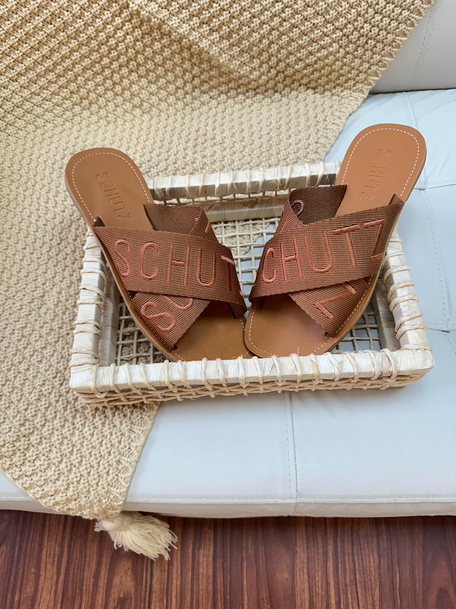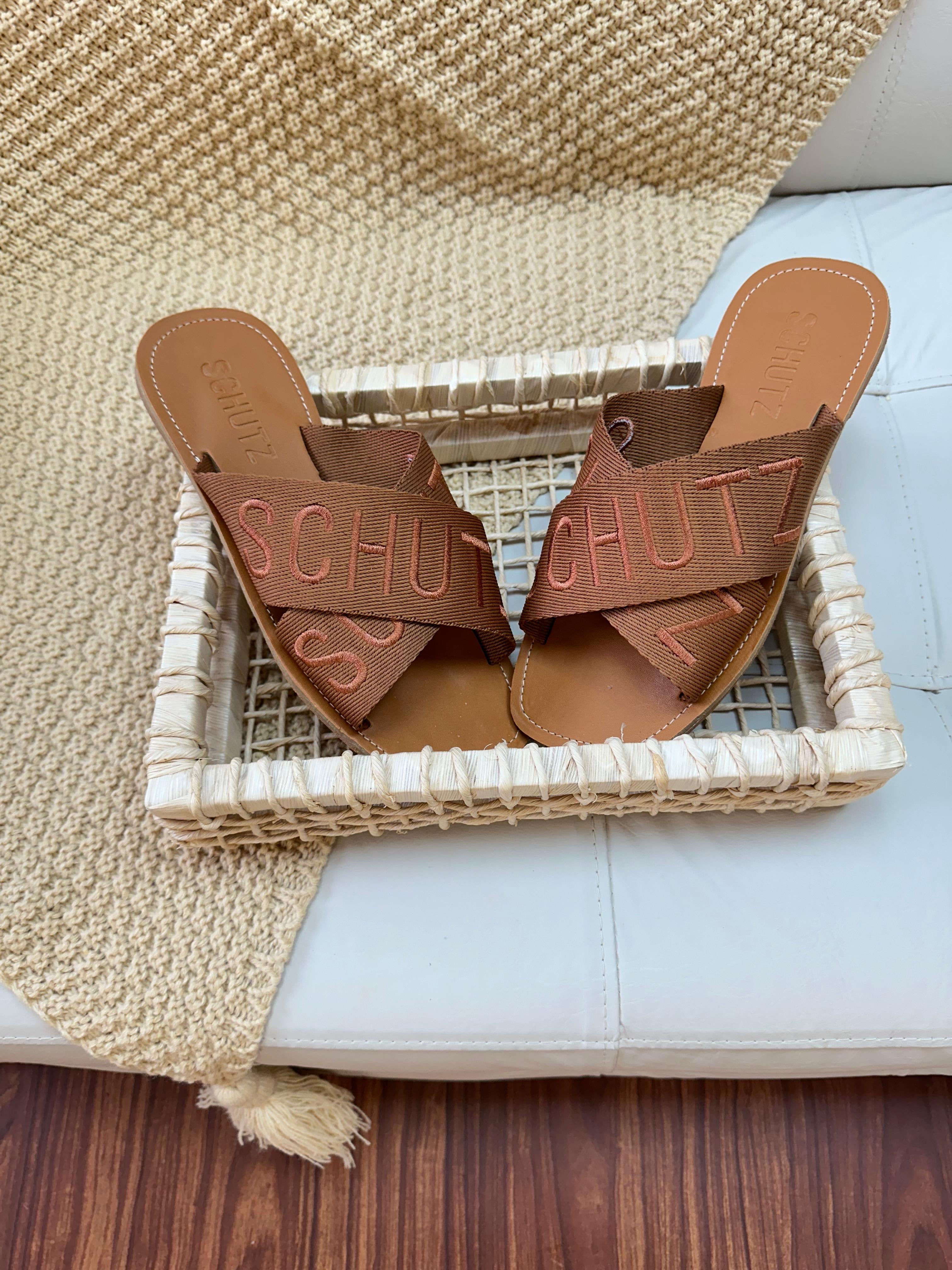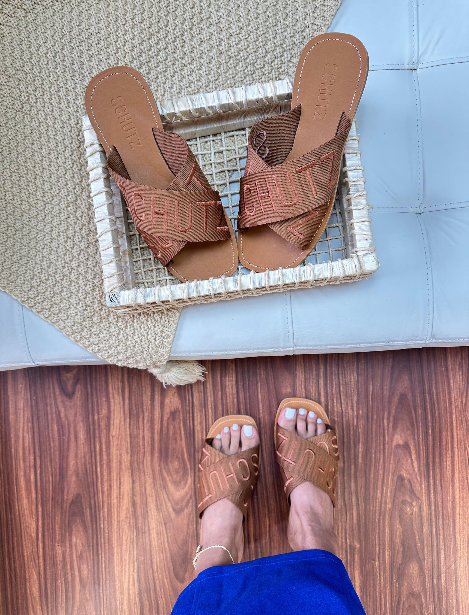 As grossas tiras trazem impacto imediato a essa flat, enquanto a aplicação da logomania tira o modelo do básico e imprime personalidade extra ao visual! Confortável, vai ser a aposta perfeita para deixar até o short jeans + t-shirt muito mais cool! Aposte!