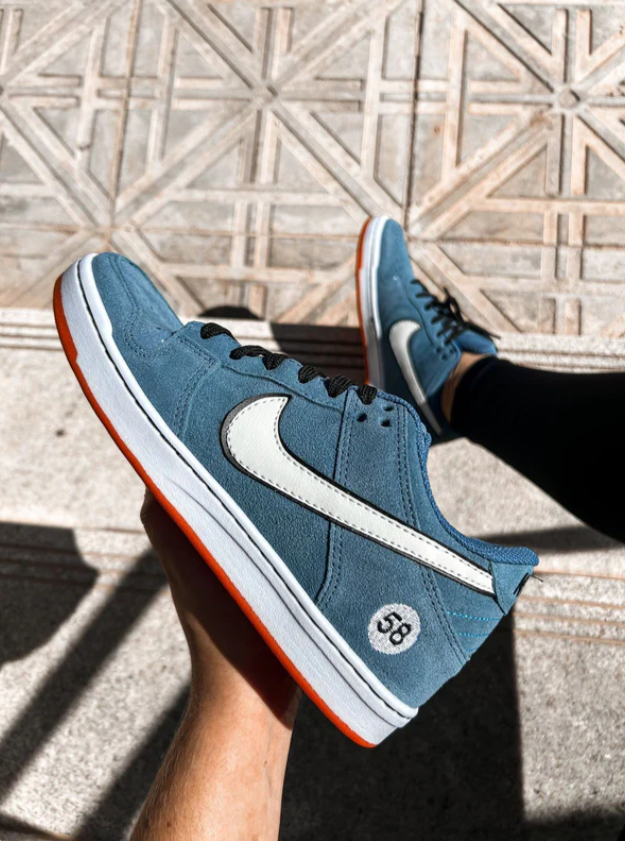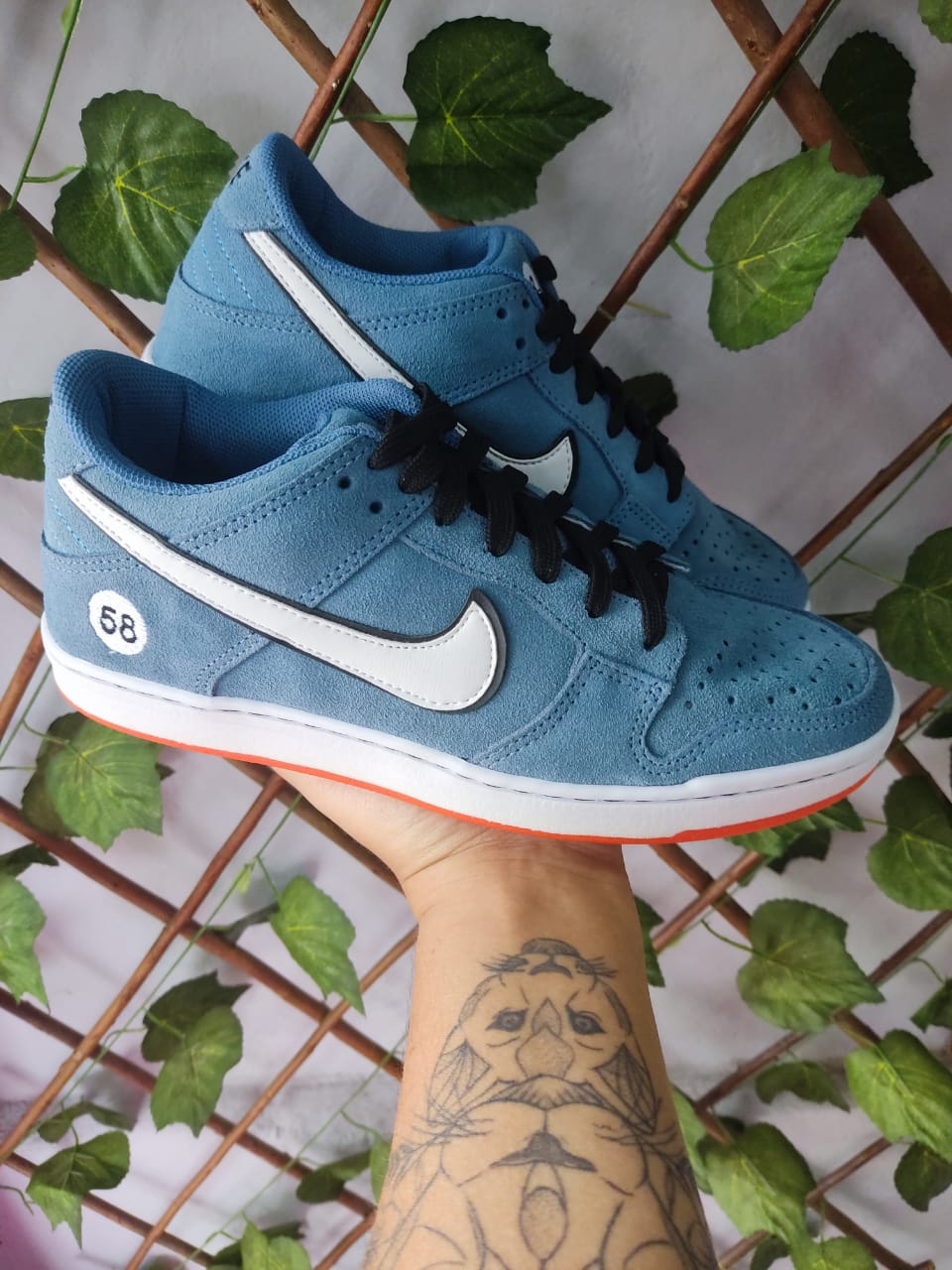 A ideia do Nike SB Dunk Low Club 58 Gulf em 2018, surgiu quando a divisão de skateboard da Nike preparou uma nova colorway do Blazer Mid batizado de “Club 58” inspirada nos lendários carros de corrida da Gulf Racing dos anos 60, onde tinham como principal característica as cores azul e laranja pintadas sobre os veículos.