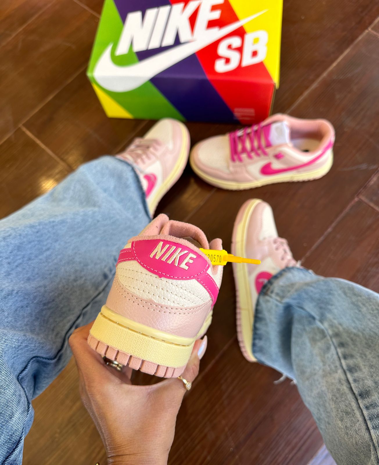 Aqui, o visual de dois tons se transforma em três, com tons de vermelho escuro, quase roxos, marcando o Swoosh, a aba do calcanhar e a marca complementar. Por baixo, o par mantém seu bloqueio de cores mais clássico, estabelecendo uma base de couros brancos neutros sob inúmeras sobreposições rosa. Os cadarços, o piso e o forro seguem o exemplo como de costume, completando um aceno bastante tardio – ou antecipado, dependendo da sua perspectiva – para o dia do romance