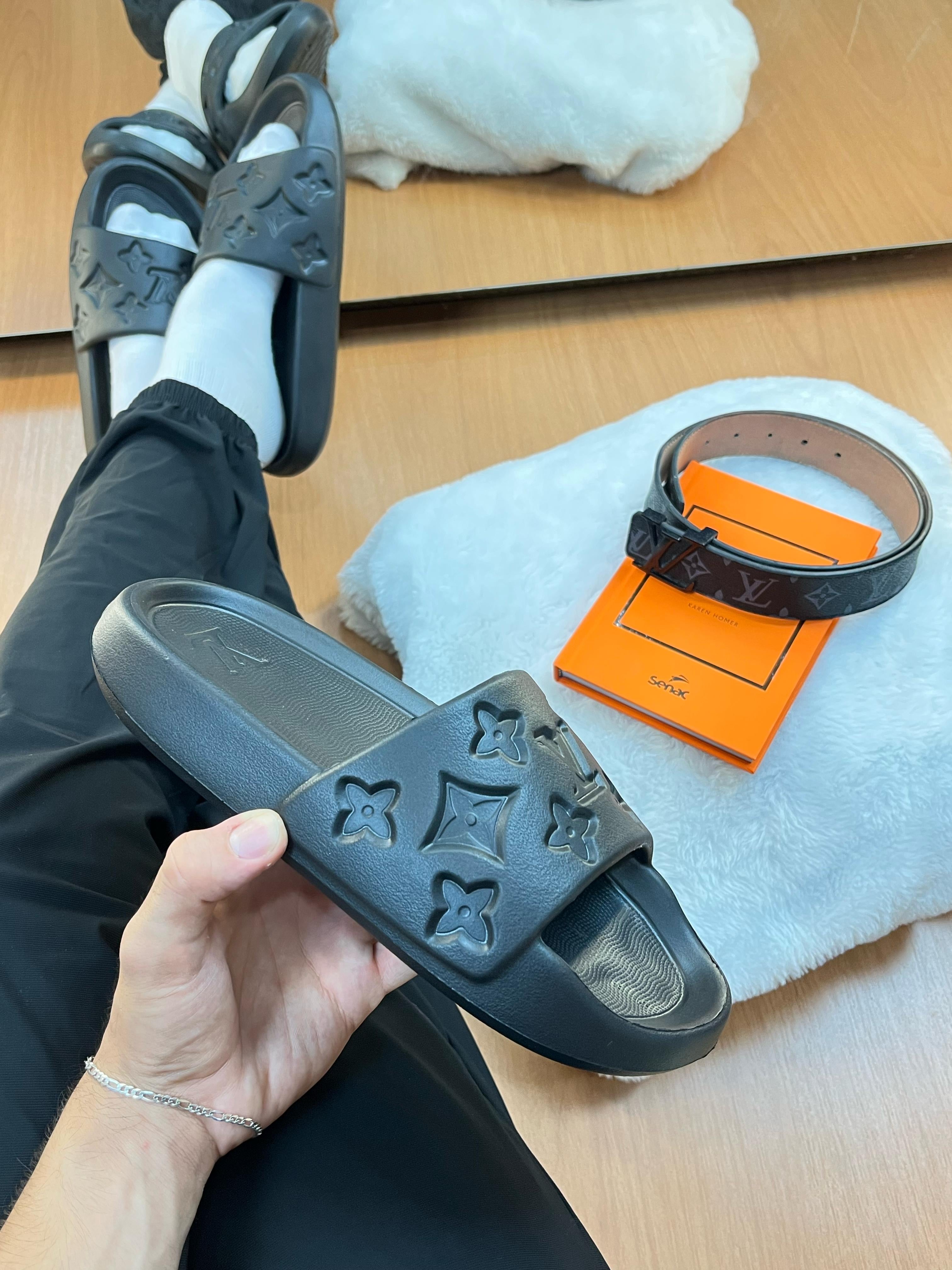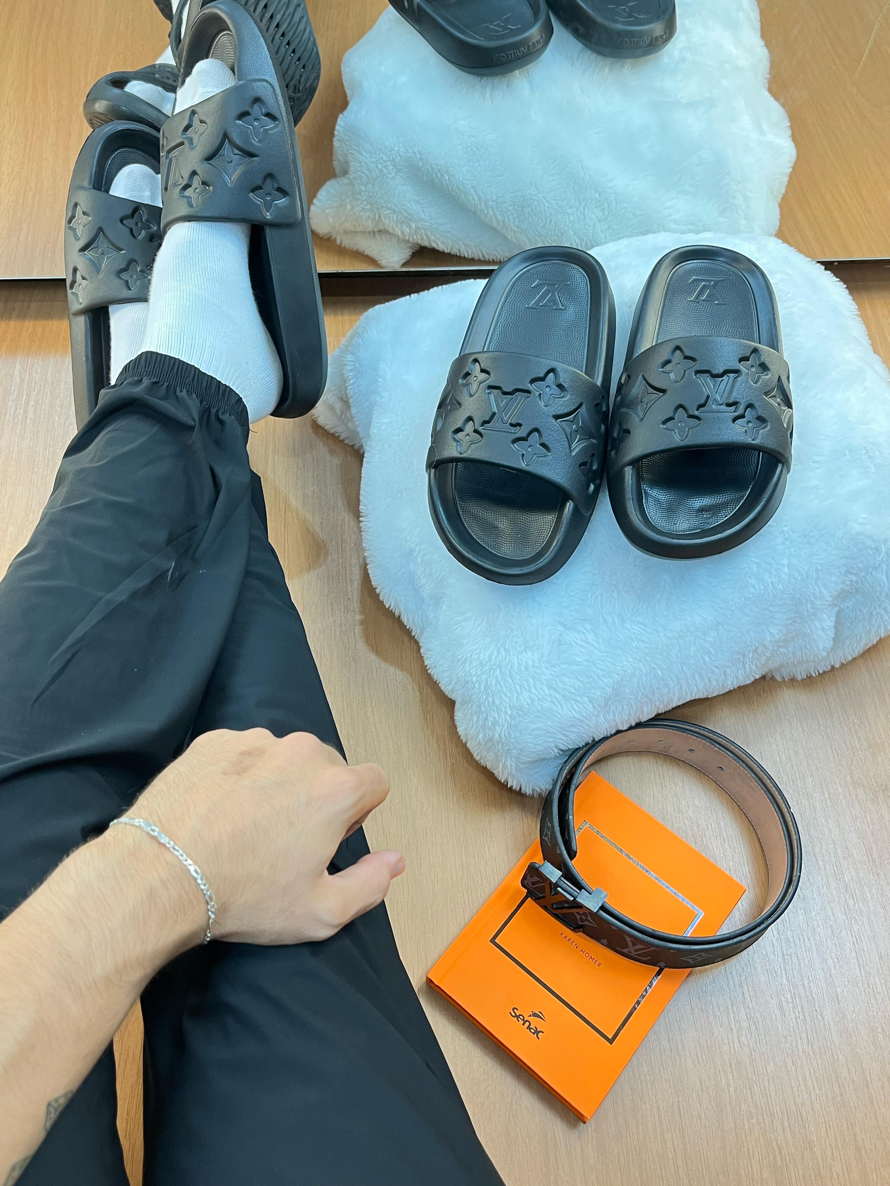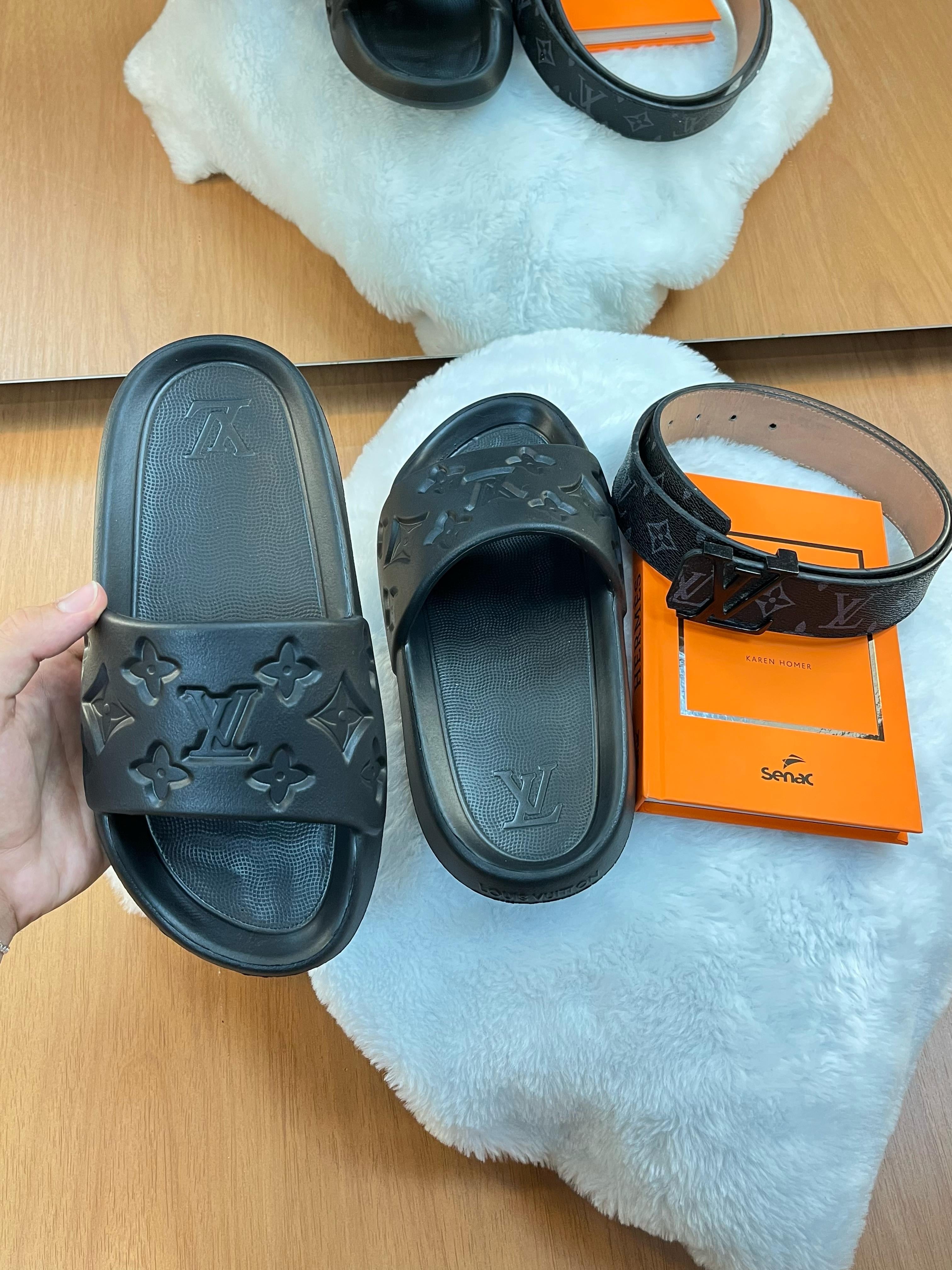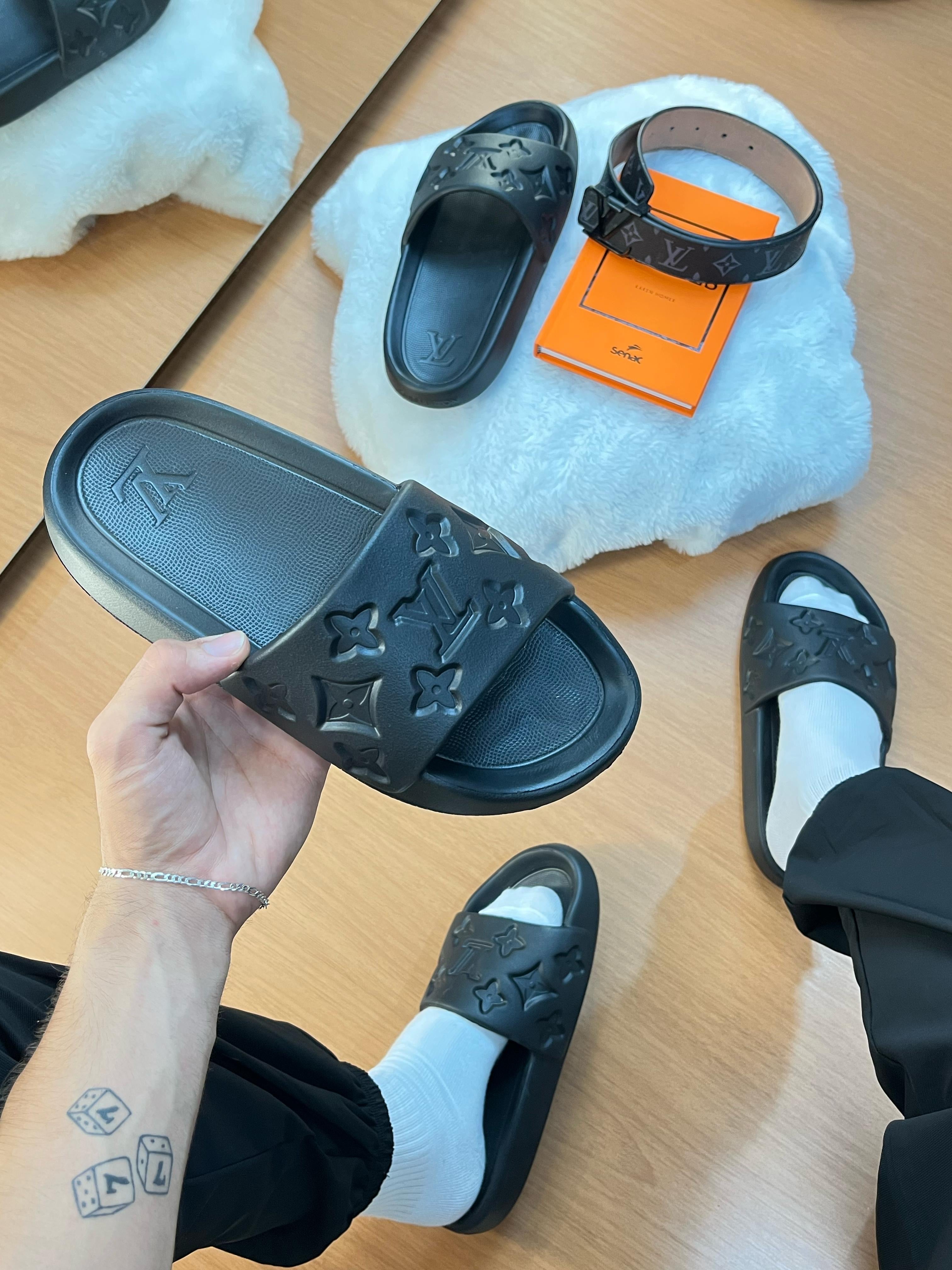 A mula Waterfront é revisitada nesta temporada com sua tira frontal gravada com o icônico padrão Monogram da Louis Vuitton. Este slide de piscina, feito de borracha à prova d'água, também apresenta uma palmilha anatômica para conforto. O solado leve e flexível é gravado com a assinatura Louis Vuitton.