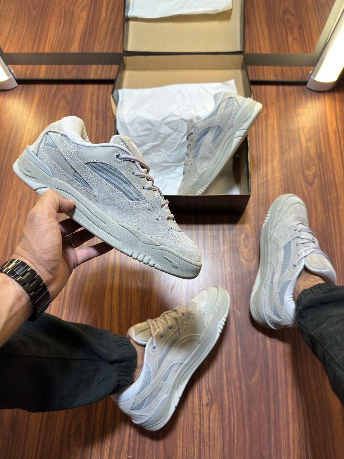 mO tênis PUMA-180 é uma silhueta ligada à cultura dos tênis de skate do final dos anos 90 e 2000, baseada em: acolchoamento de grandes dimensões, formas robustas e partes superiores técnicas lo-fi. Criado do zero, PUMA-180 também está enraizado em algumas joias obscuras disponíveis em nosso arquivo PUMA para garantir a autenticidade e credibilidade do estilo. Esta execução apresenta base em mesh fechada com sobreposições em camurça e materiais sintéticos.