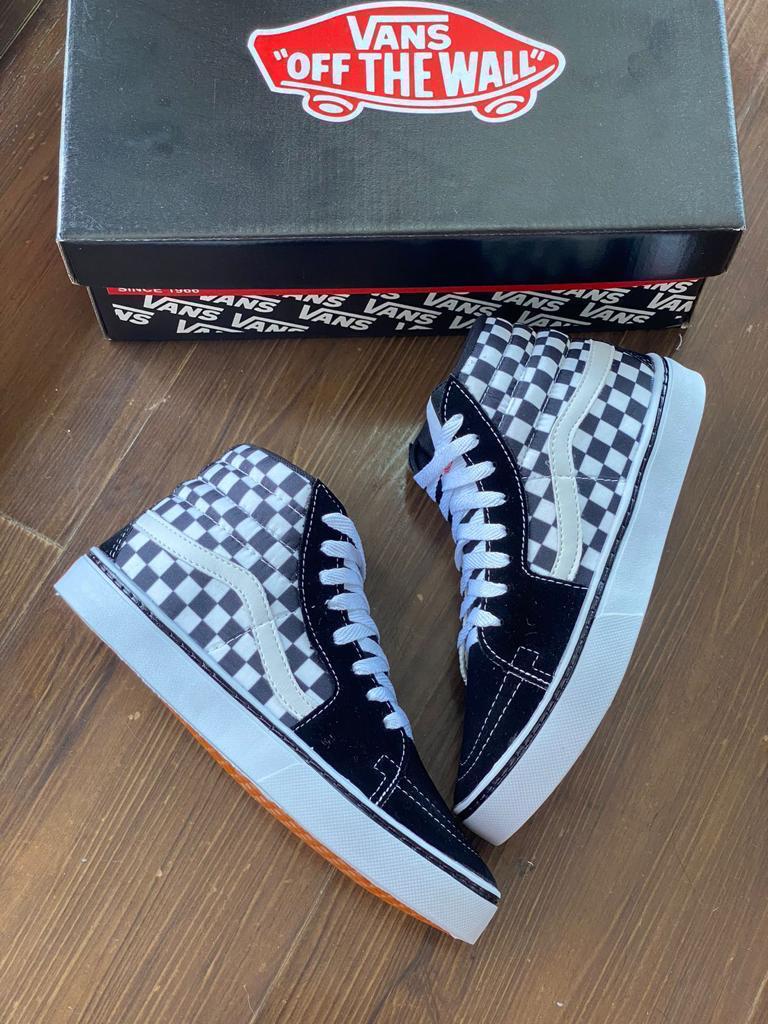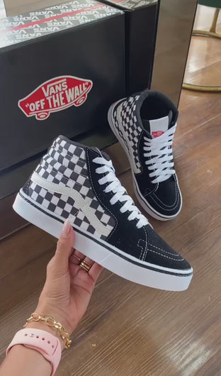 O tênis Sk8-Hi foi introduzido em 1978, originalmente chamado de Style 38 e exibia a agora icônica Vans Sidestripe em uma nova silhueta inovadora de cano alto. Por ter sido apenas o segundo modelo com o marcador reconhecível, antigamente conhecido como “faixa de jazz”, o Sk8-Hi trouxe um visual totalmente novo à família Vans. Honrando aquele primeiro lendário cano alto, o tênis Classic Sk8-Hi é feito com cabedais duráveis em camurça e lona na cor preta, sidestripe em couro branco e viras laterias em borracha na cor branca. Este tênis com cadarço também possui biqueiras reforçadas, colarinhos acolchoados firmes e o solado emborrachado característico da marca em waffle. • Tênis lendário de cano alto com faixas laterais da Vans • Cabedais duráveis em camurça e lona • Fechamento com cadarço • Biqueiras reforçadas • Colarinhos acolchoados firmes • Solado emborrachado característico da marca em waffle